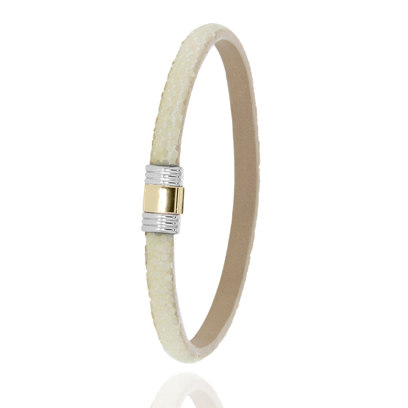 Albanu Schließe 614 Gold + Edelstahl SHAGREEN weiß