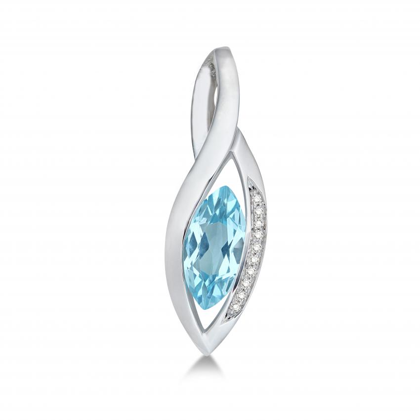 & Uhren » Colliers » 14KT Anhänger Weiss mit Blau Topaz und Diamanten U...