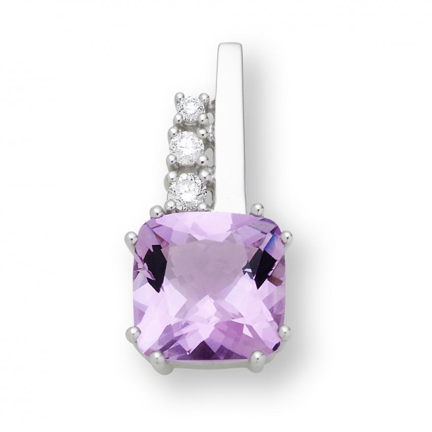 » Colliers » 14KT Anhänger Weissgold mit Diamanten und Amethyst...