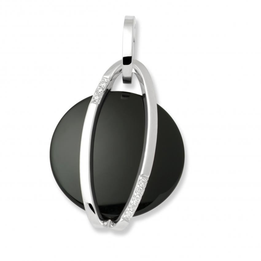 & Uhren » Colliers » 14KT Anhänger Weissgold mit Diamanten und Onyx USK...