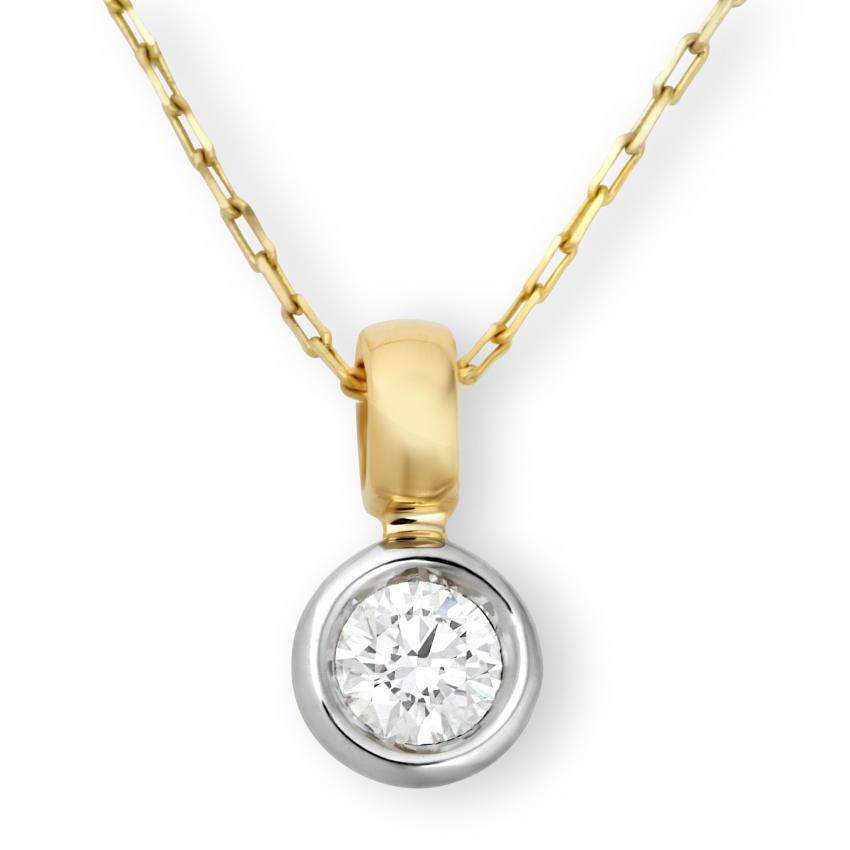 & Uhren » Colliers » 18 KT (750) Gelb-/Weißgold Solitär Halskette mit I...