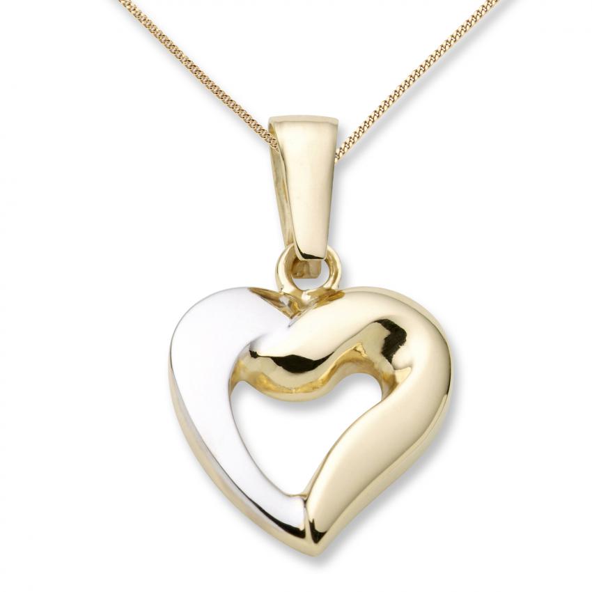 & Uhren » Colliers » 18ct Two Tone Gold Halskette mit Heart Anhänger US...