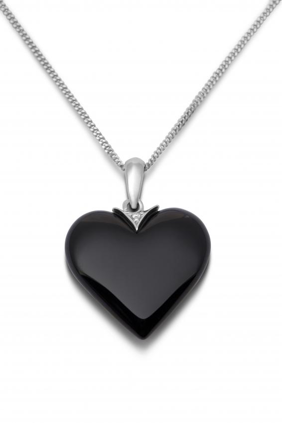 & Uhren » Colliers » 9 KT Weißgold Schwarzer Agate Herz Anhänger Brilla...