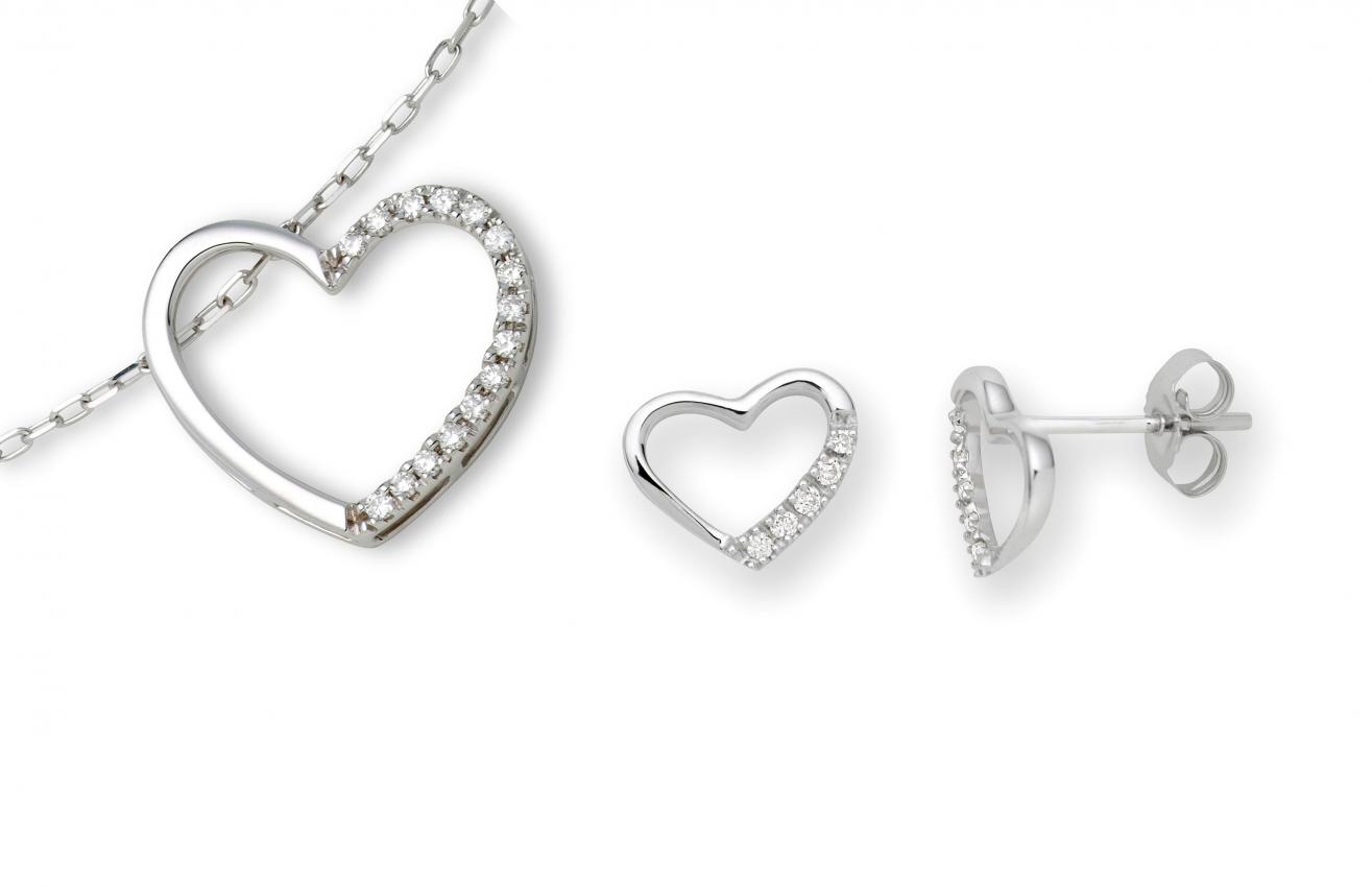 & Uhren » Colliers » 925 Silber SET HEART Ohrringe und NECKALCE USK10MS...
