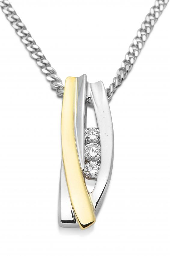 & Uhren » Colliers » 925 Silber und Part 9ct Gelbgold Zirconia Anhänger...