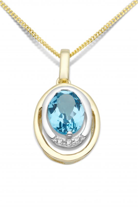 & Uhren » Colliers » 9ct 2 Colour Gold Blau Topaz und Diamant Circle An...