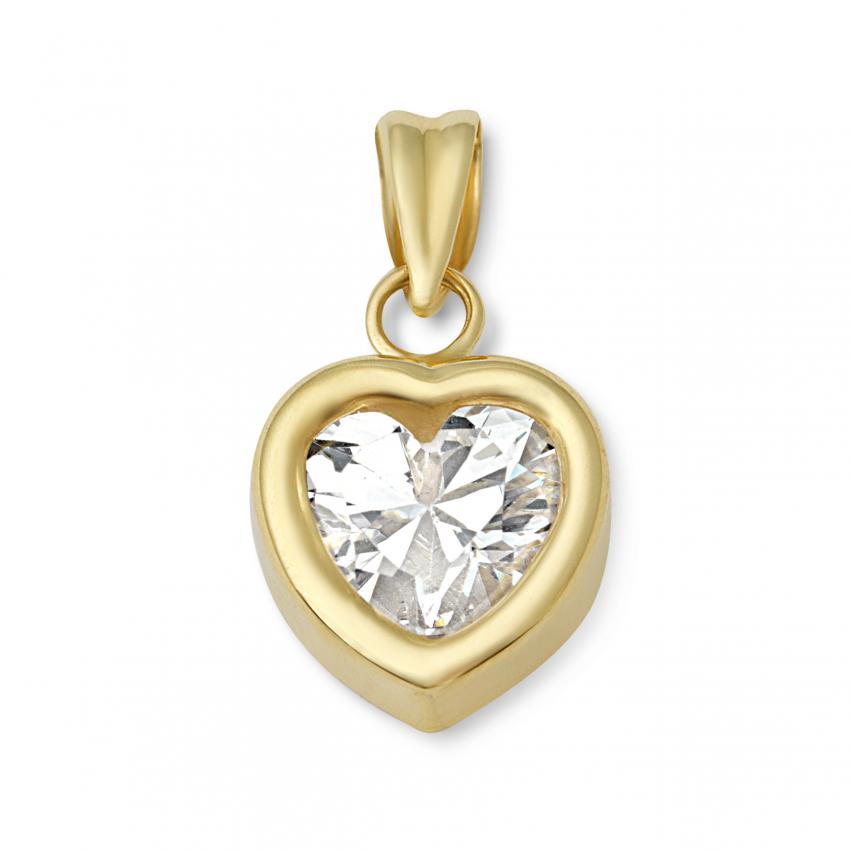 » Colliers » 9ct Gelbgold Clear Cubic Zirconia Heart Anhänger U...