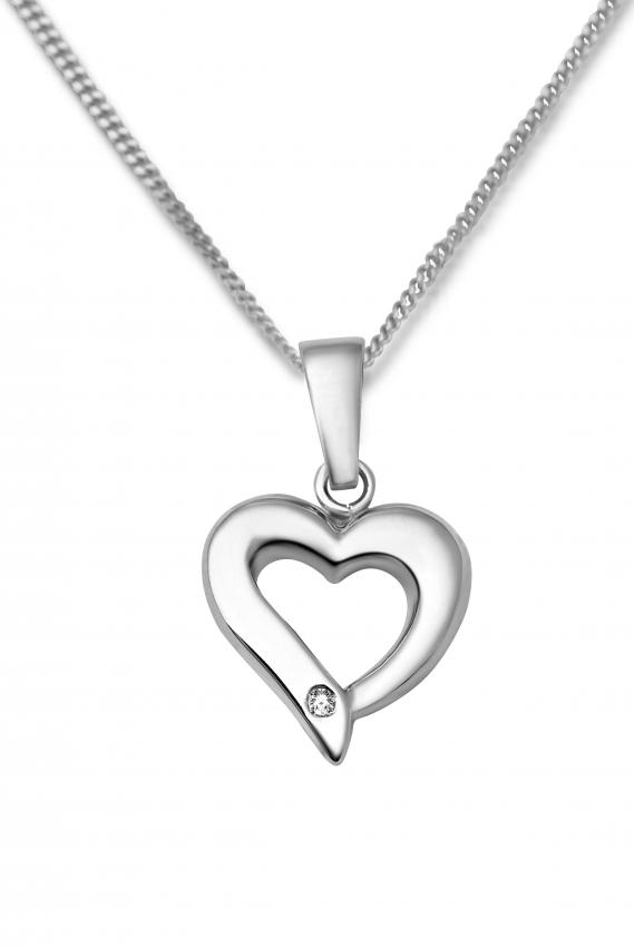 & Uhren » Colliers » 9ct Weissgold Diamant Set Open Heart Anhänger mit ...