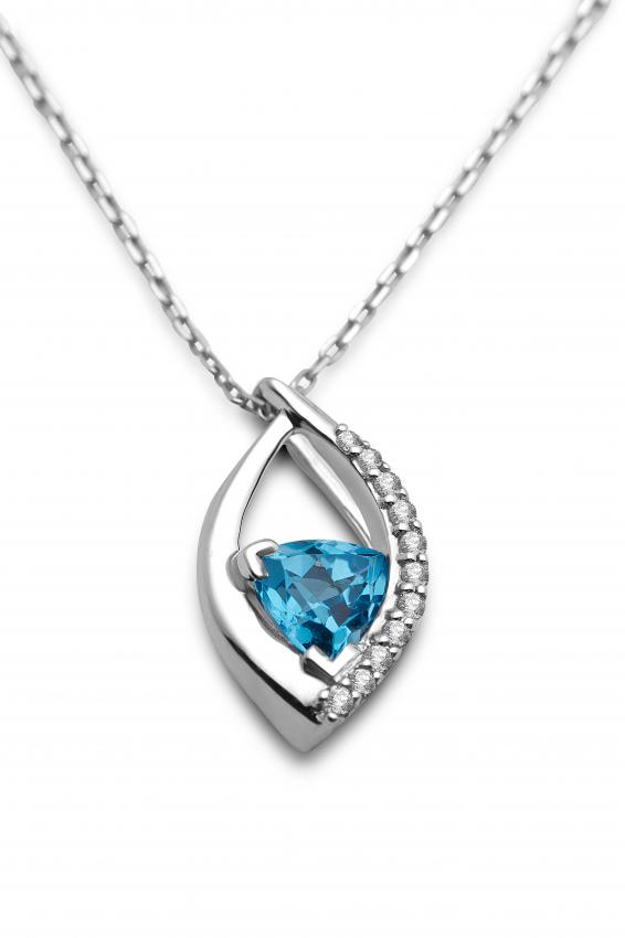 & Uhren » Colliers » 9ct Weissgold Diamant und Blau Topaz Marquise Shap...