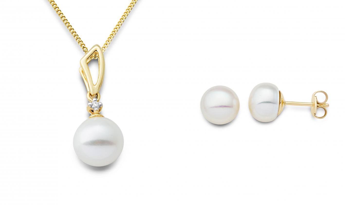 & Uhren » Colliers » 9KT Gelbgold SET Ohrringe und Halskette Perlen und...