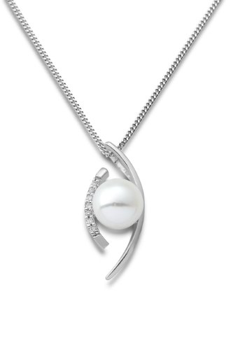 9KT Weissgold Halskette und Diamanten mit Perle USK10MG9114N