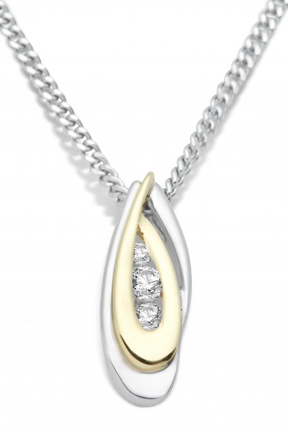 » Colliers » Part 9ct Gelbgold on 925 Silber CZ Träne Anhänger ...