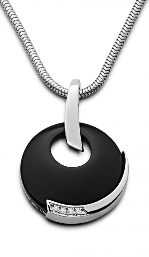 & Uhren » Colliers » SLVR Halskette Silber CZ + Onyx USK10MSM171N