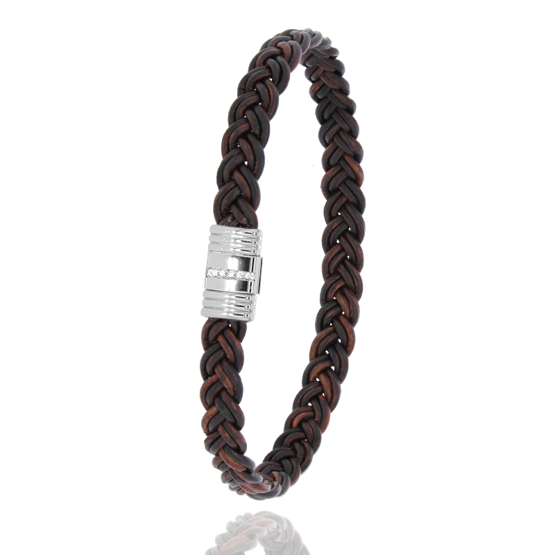 Albanu Schließe 608/1L Edelstahl + Diamanten braun Leder