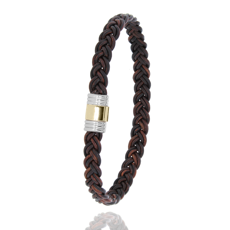 Albanu Schließe 614 Gold + Edelstahl braun Leder