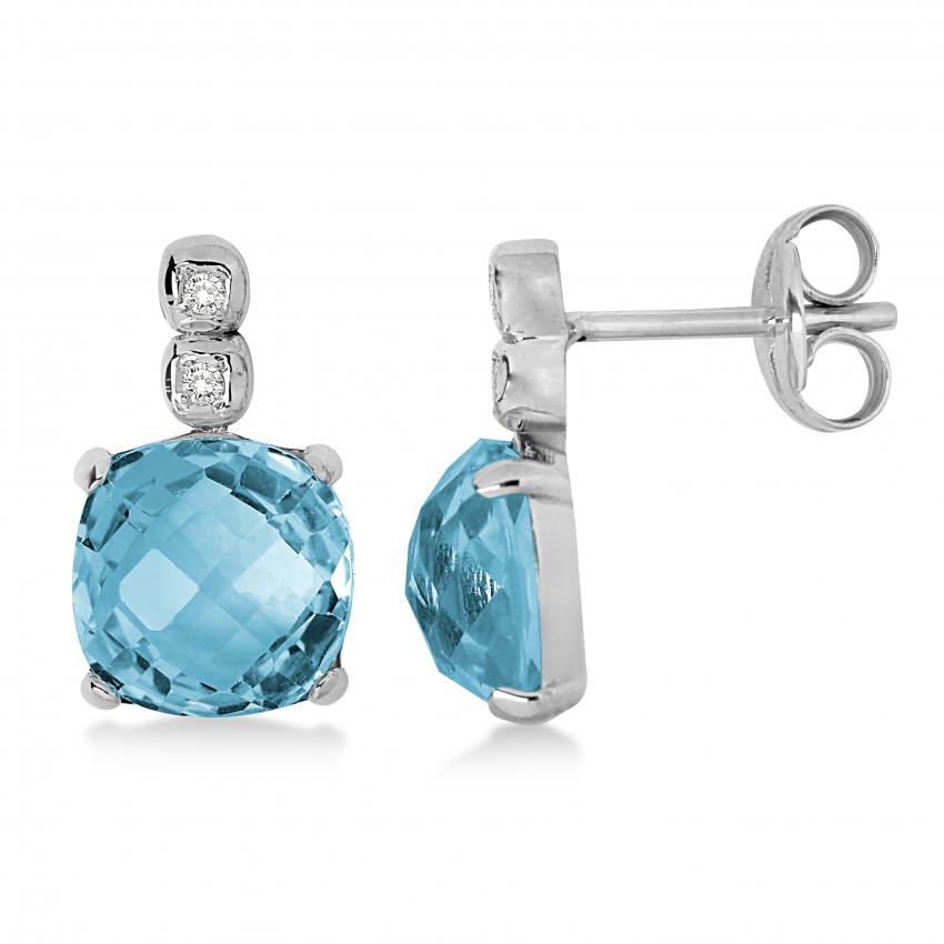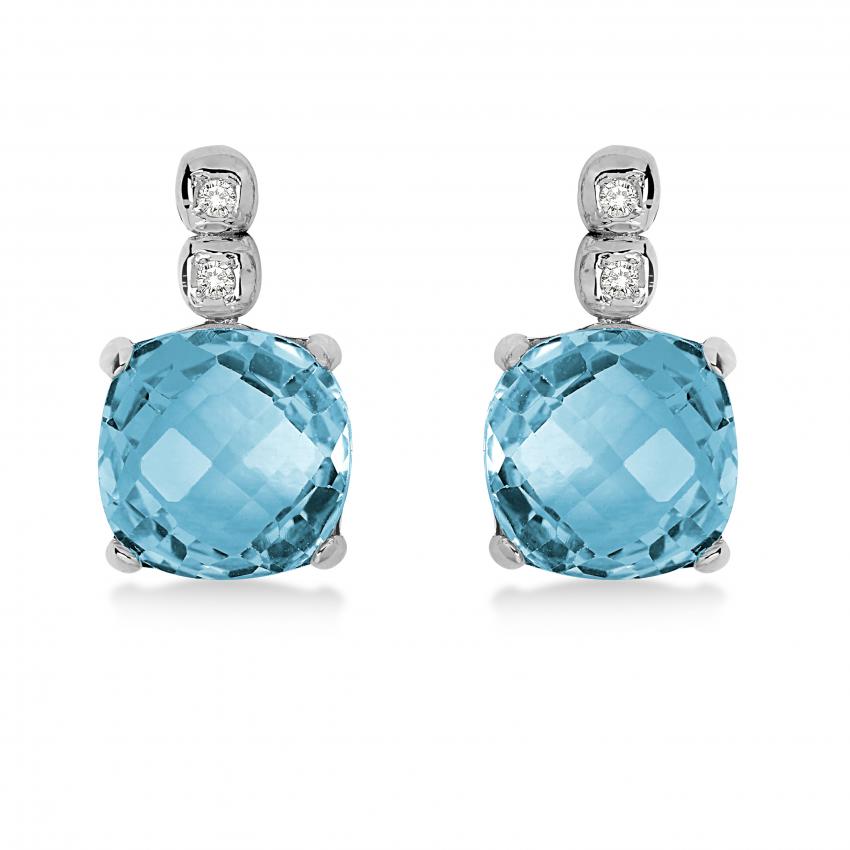 & Uhren » Ohrringe » 14KT Ohrringe Weissgold mit Blau Topaz und Diamant...