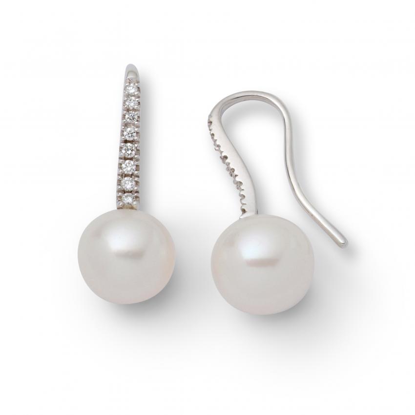 18ct Weissgold Ohrringe mit Diamanten und Perlen USK20M0458W