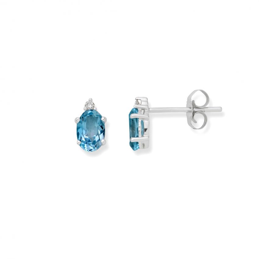 & Uhren » Ohrringe » 9 KT (375) Ovale Ohrstecker Weißgold mit Blauem To...