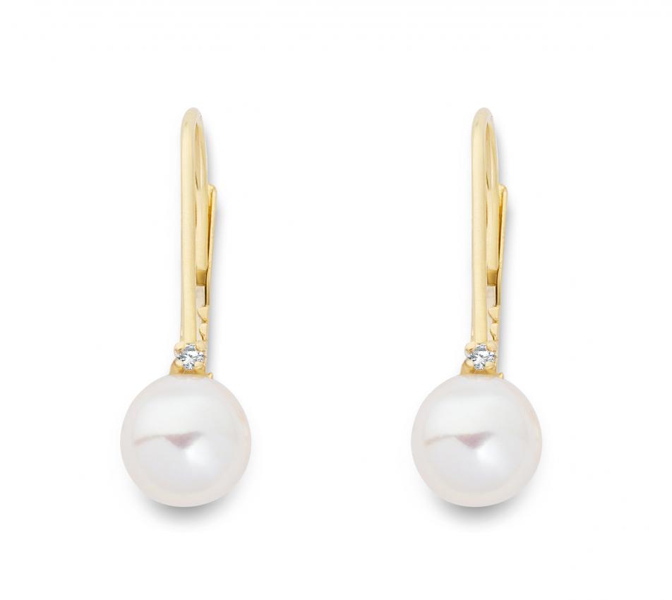 & Uhren » Ohrringe » Damen 9 Carat Gelbgold Süßwasser Perle und Diamant...