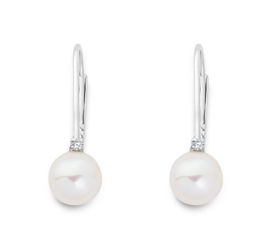 Damen 9 Carat Weissgold Süßwasser Perle und Diamant Ohrringe USK20MA9058E