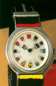 "The color of time " ist eine künstlerisch gestaltete Uhr, die in einer limitierten Sammlerauflage von 200 Stück hergestellt wurde. Auf weißgrundigem Zifferblatt sind die Stunden durch farbige Pinselstriche dargestellt. Das mechanische Werk wird von Hand aufgezogen. Die Stunden und Minuten werden durch zwei Pinsel angezeigt, die auf rotierenden Scheiben aus hauchdünnem Glas aufgemalt sind.
