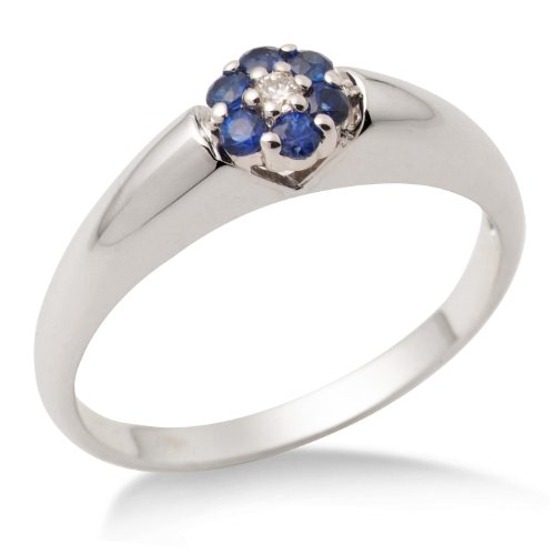& Uhren » Ringe » 18KT Weissgold Ring mit Diamant und Saphir USK40MG...