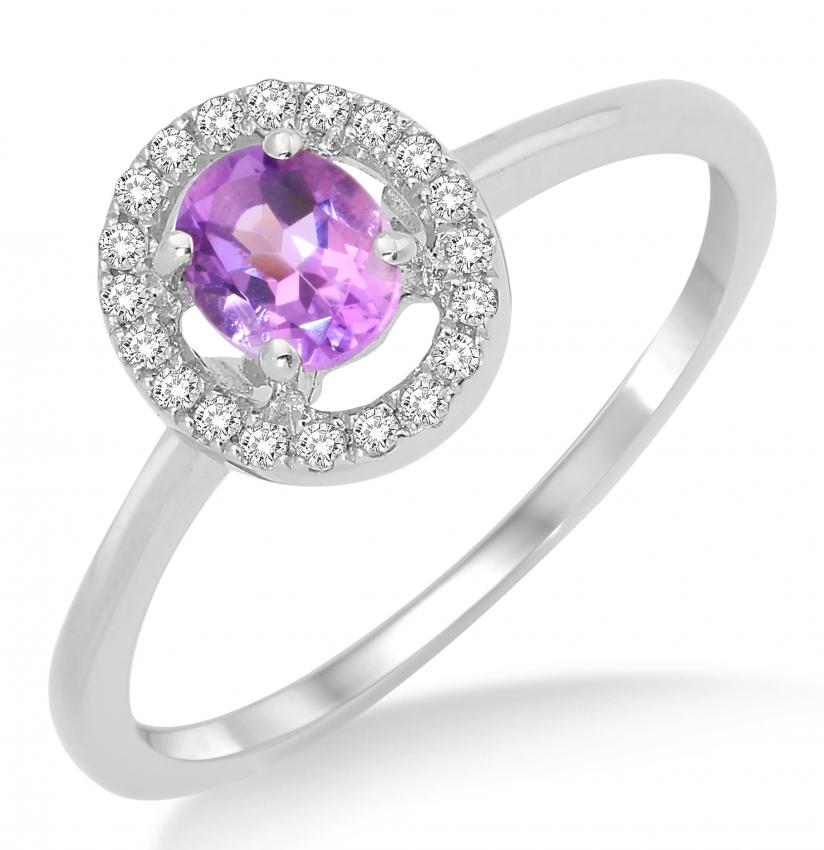 9 KT (375) Weißgold mit Amethyst 0,31ct umrahmt von Brillanten 0,10ct USK40MP9007RM