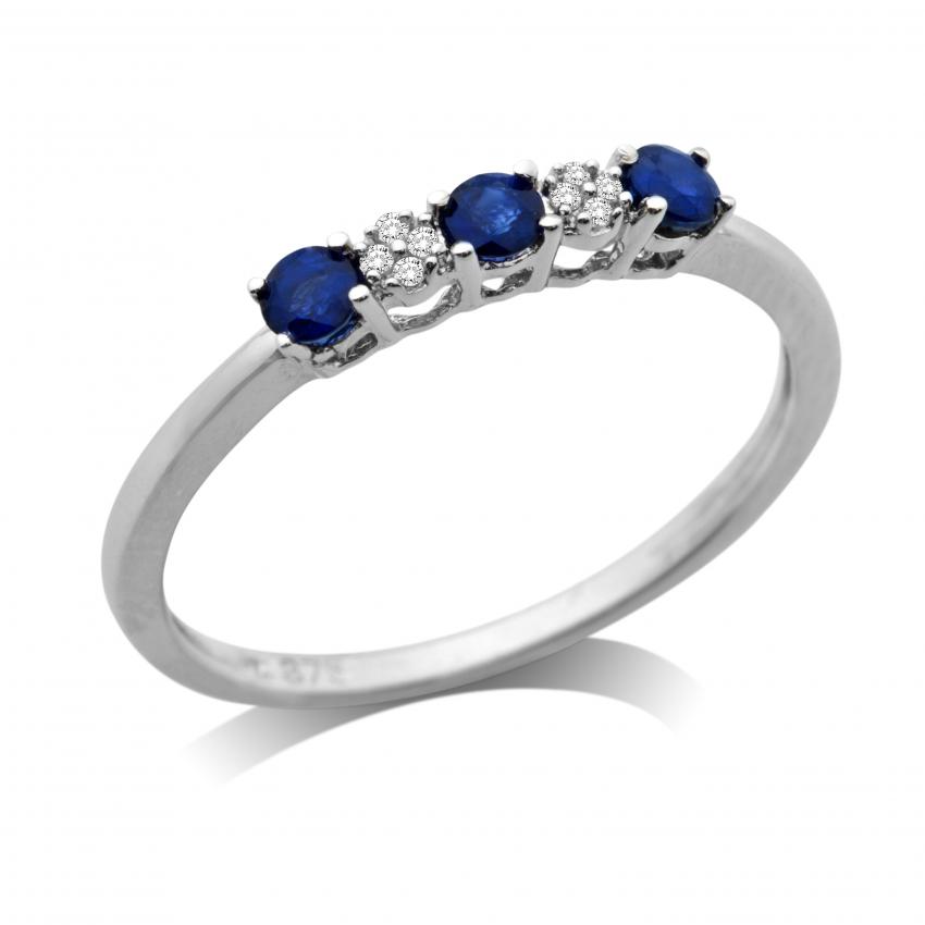 » Ringe » 9 KT Weißgold mit Saphir und Brillanten USK40MSJ90...