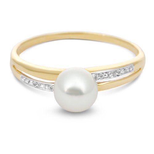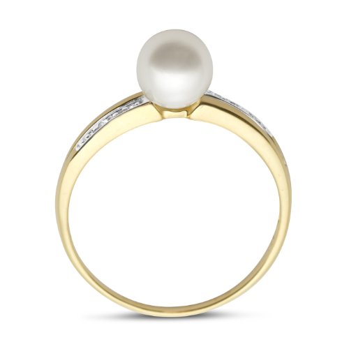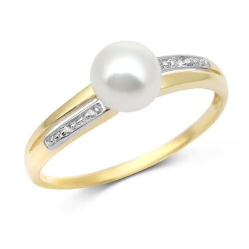 & Uhren » Ringe » 9KT Gelbgold Ring mit Diamanten und Süßwasser Perl...