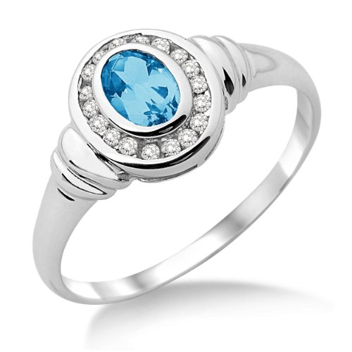9KT Ring Weissgold mit Blau Topaz und Diamanten USK40MT006BTRM