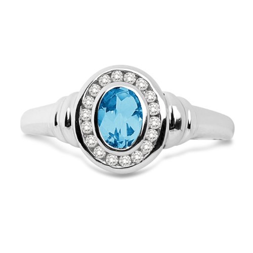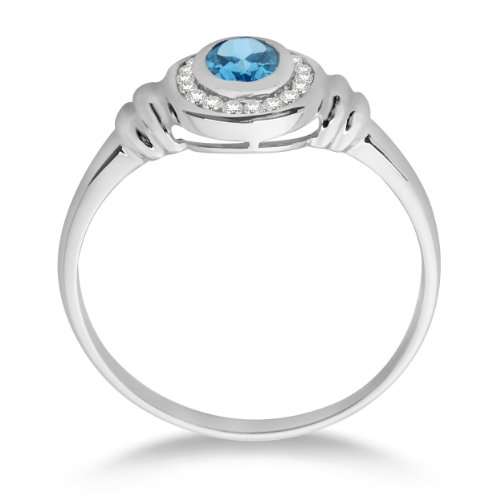 » Ringe » 9KT Ring Weissgold mit Blau Topaz und Diamanten US...