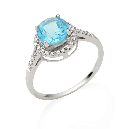 » Ringe » Ring 9Karat Weissgold mit Blau topas und Diamanten...