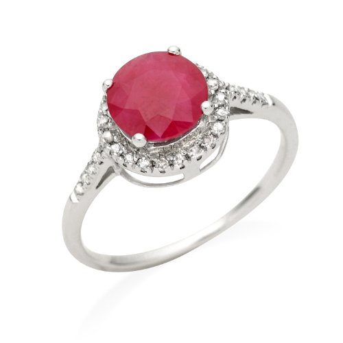 & Uhren » Ringe » Ring 9Karat Weissgold mit Rubin und Diamanten Größ...